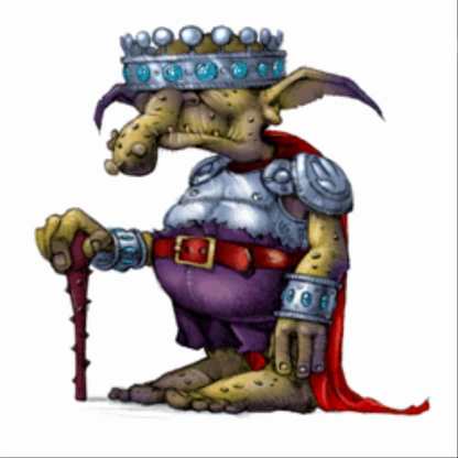 King Ijnek is a primary antagonist in the game, but like the Magical General, is rarely seen despite this. He is hated by those who fear him, but is frequently abused by the Goblin Mama Queen, so Ijnek takes it out on everyone else, including Frogger. He leads the Goblins in their attack on the Third Kingdom.
